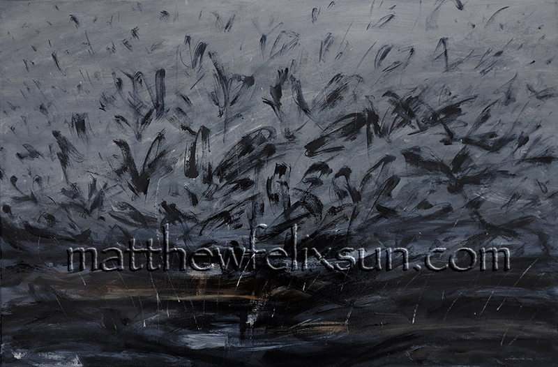 Through these Spartan scenes, I tried to capture a certain and emptiness. Empty, desolate, or barren. A wasteland of landscape and ethos. Perhaps, these paintings reflected my upbringing in the rather desolate northern China, under a repressive cultural and political atmosphere, or the zeitgeist of what my current dwelling has become. Forlorn, isolated, and resigned.